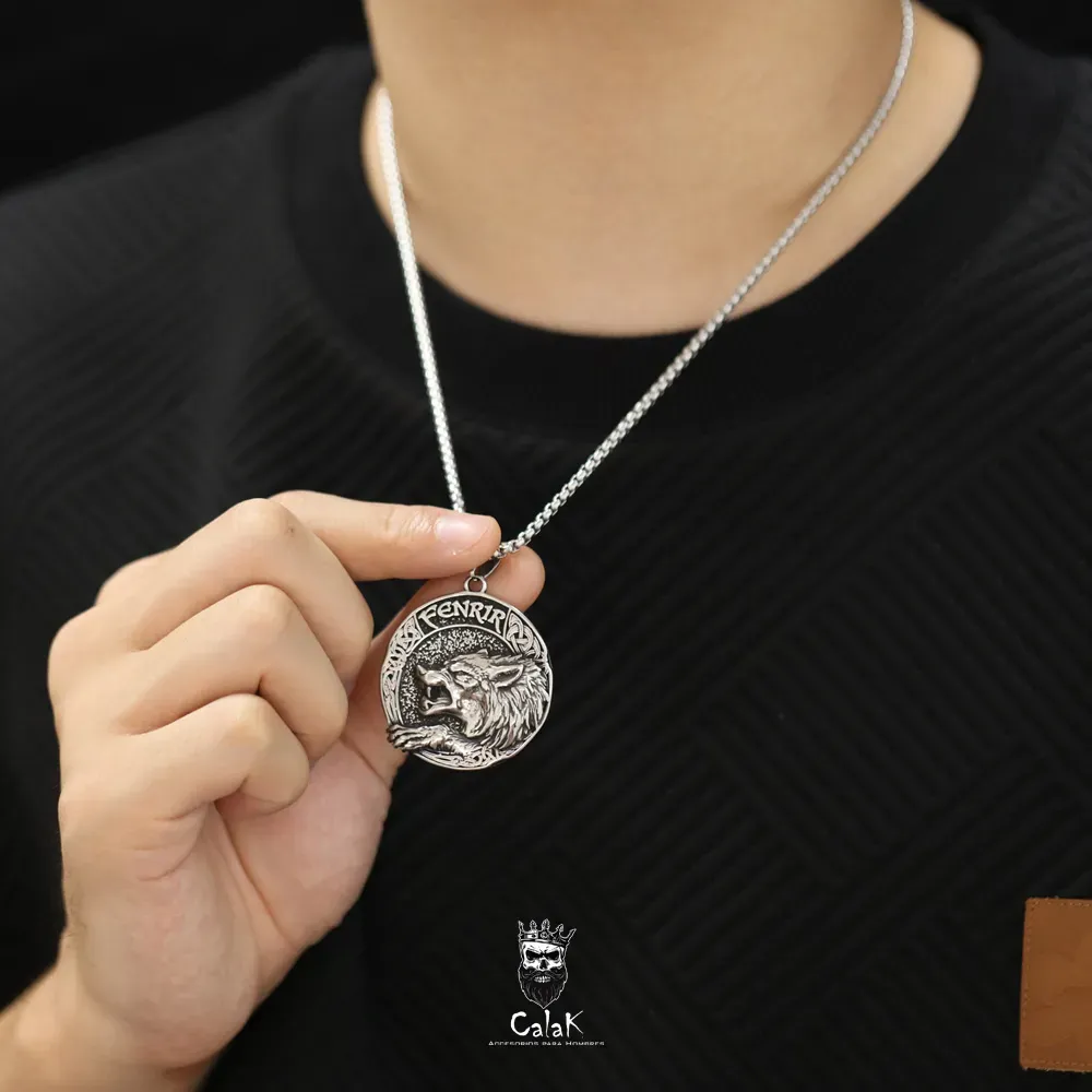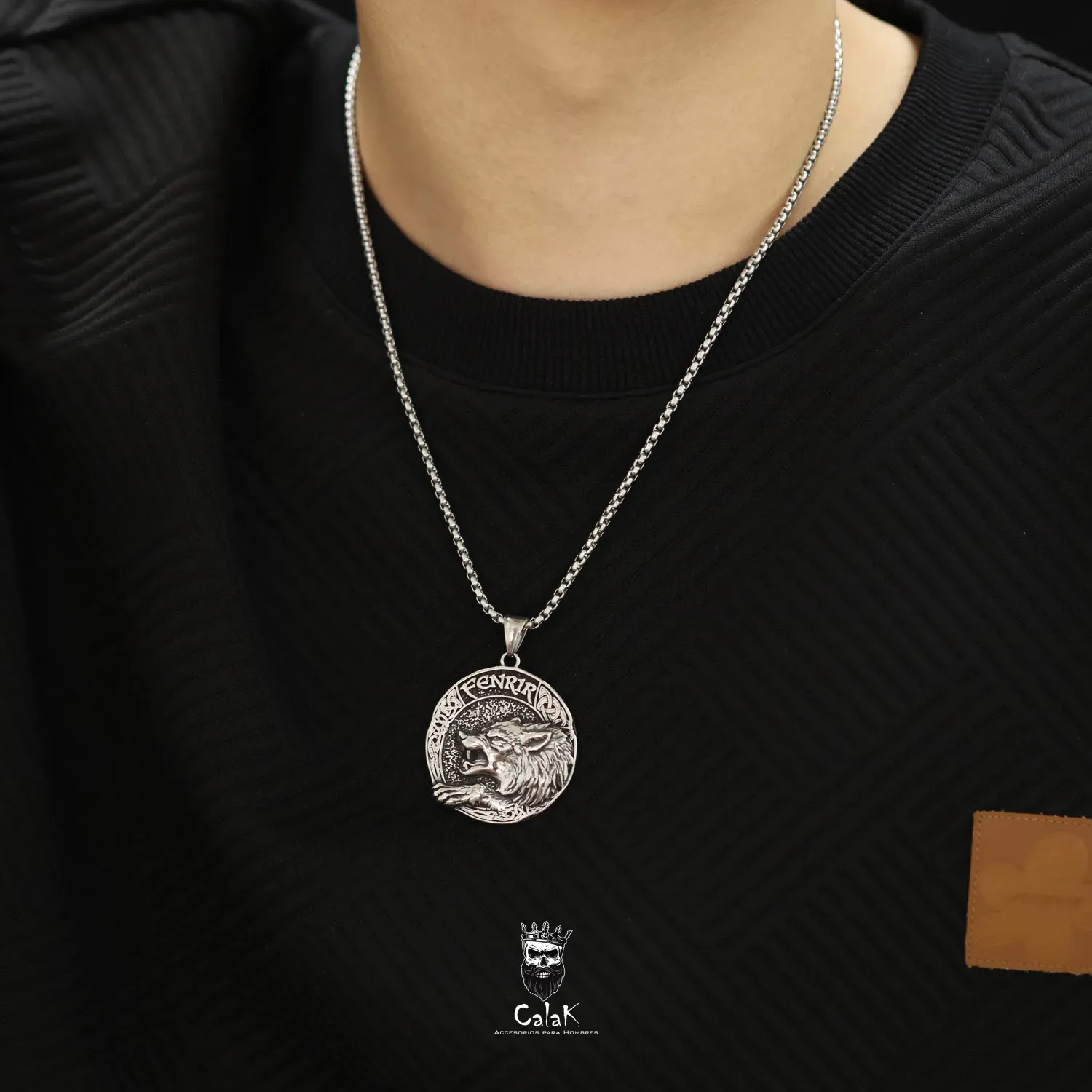 Collar Fenrir, inspirado en la mitología nórdica, representa la fuerza y la libertad. El medallón de 4 cms muestra al lobo gigante Fenrir, hijo de Loki. Con una cadena de 60 cms, este collar es perfecto para quienes buscan un estilo único y significativo.