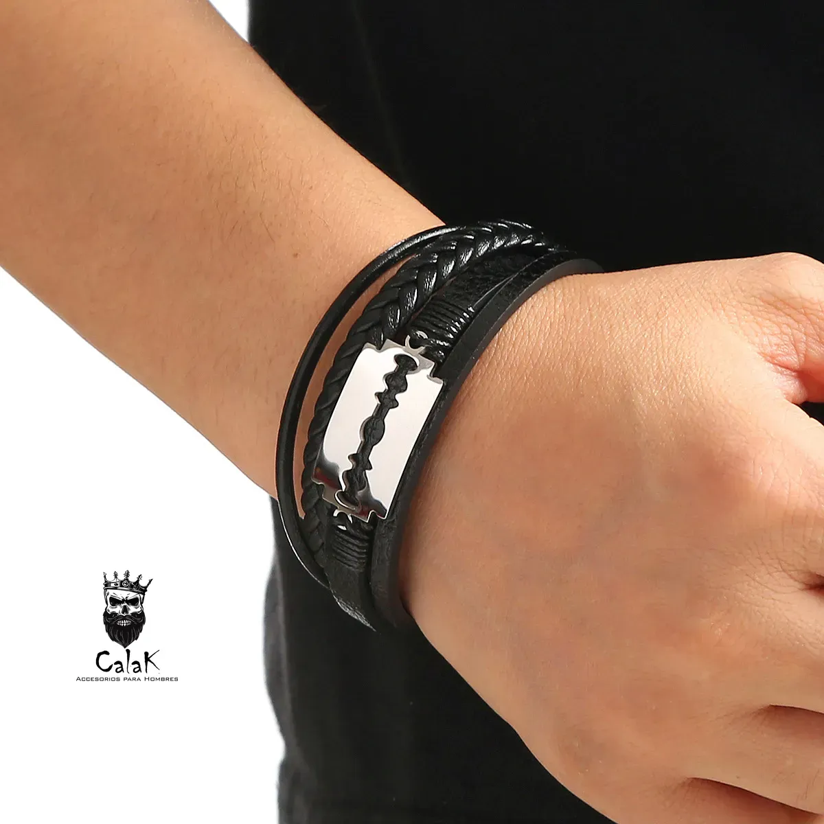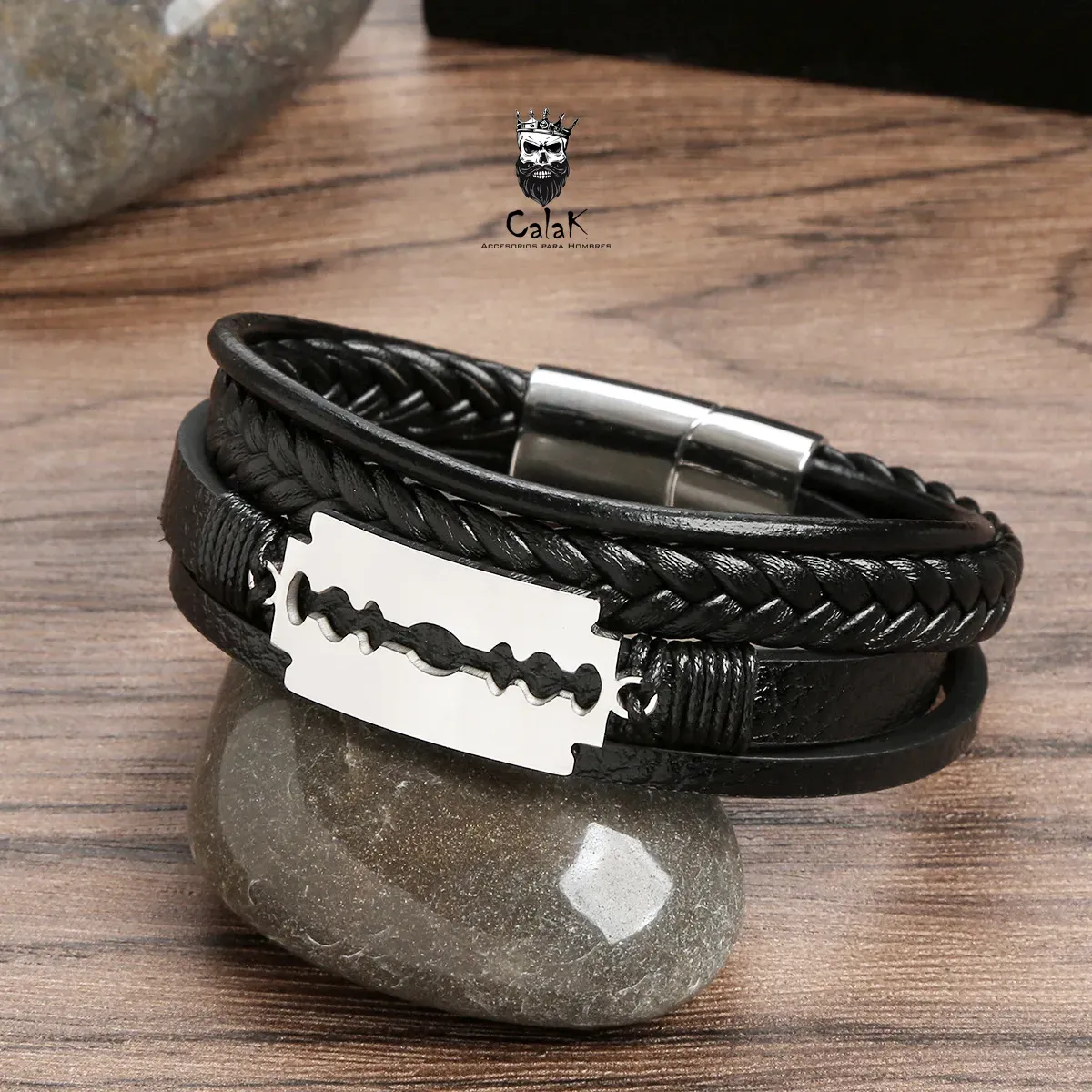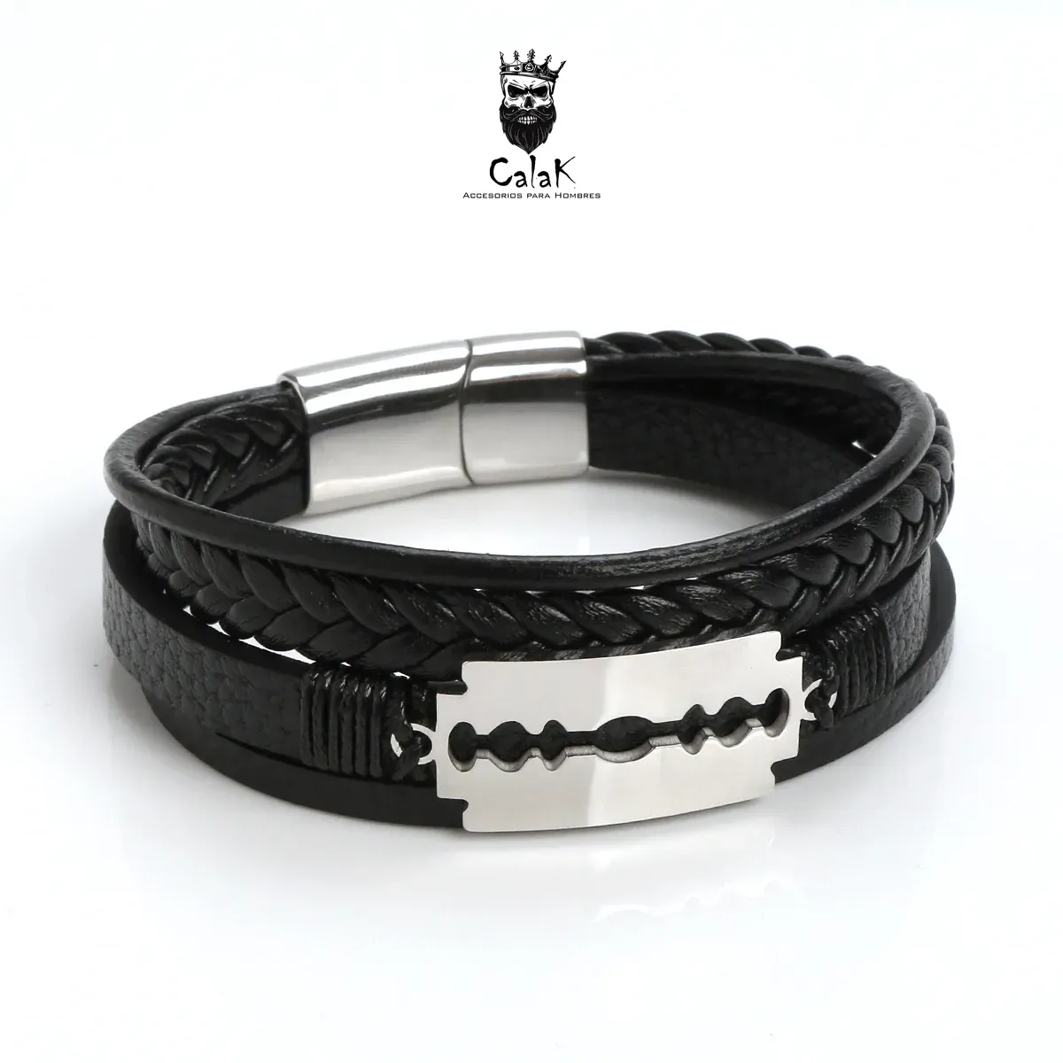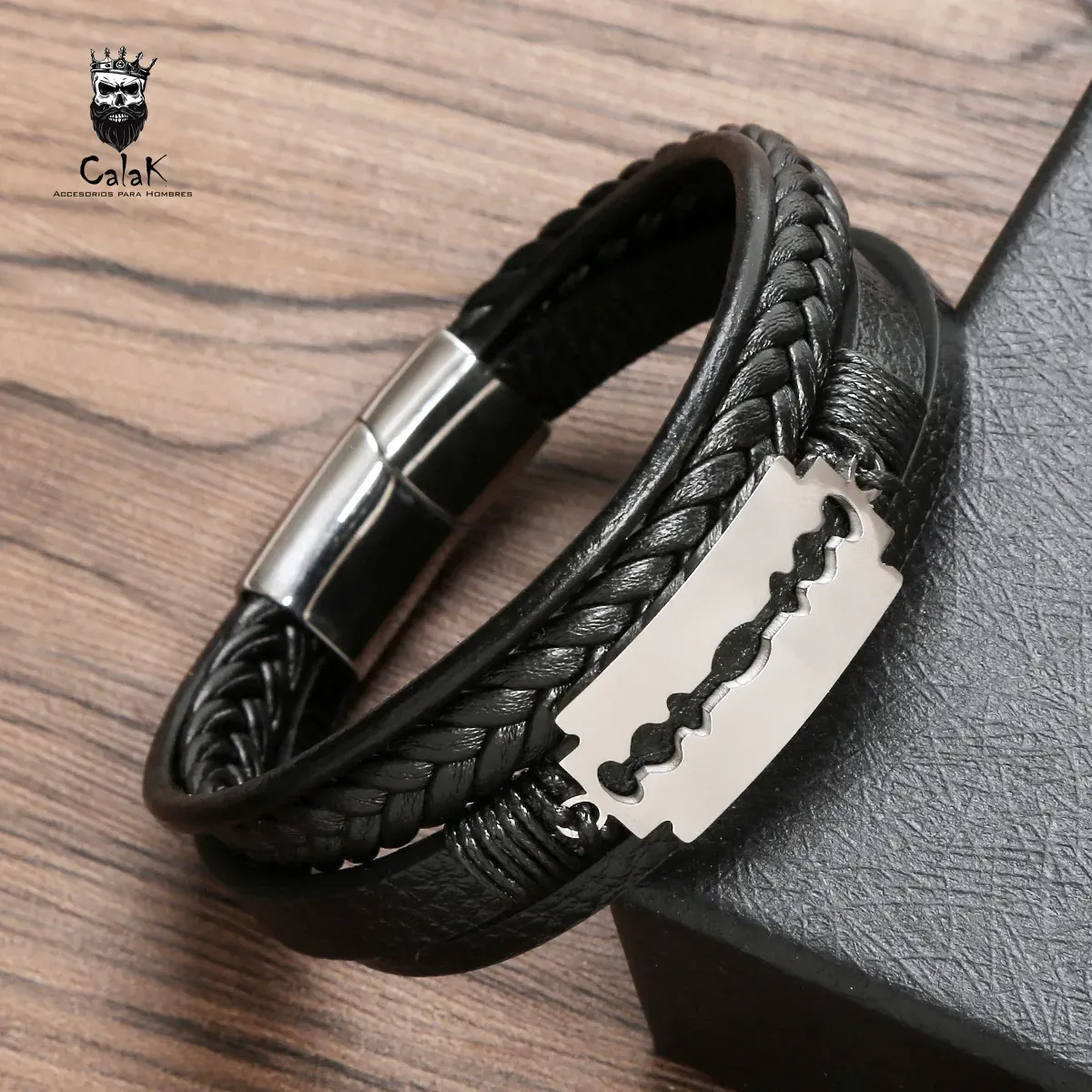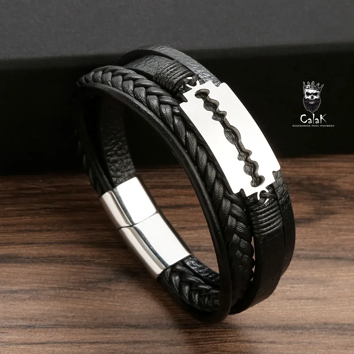Esta pulsera de acero con cuchilla es el accesorio perfecto para agregar un toque de estilo y elegancia a tu atuendo. Confeccionada con piel sintética de alta calidad y broche magnético, esta pulsera de 20.5cm es ideal para cualquier ocasión.