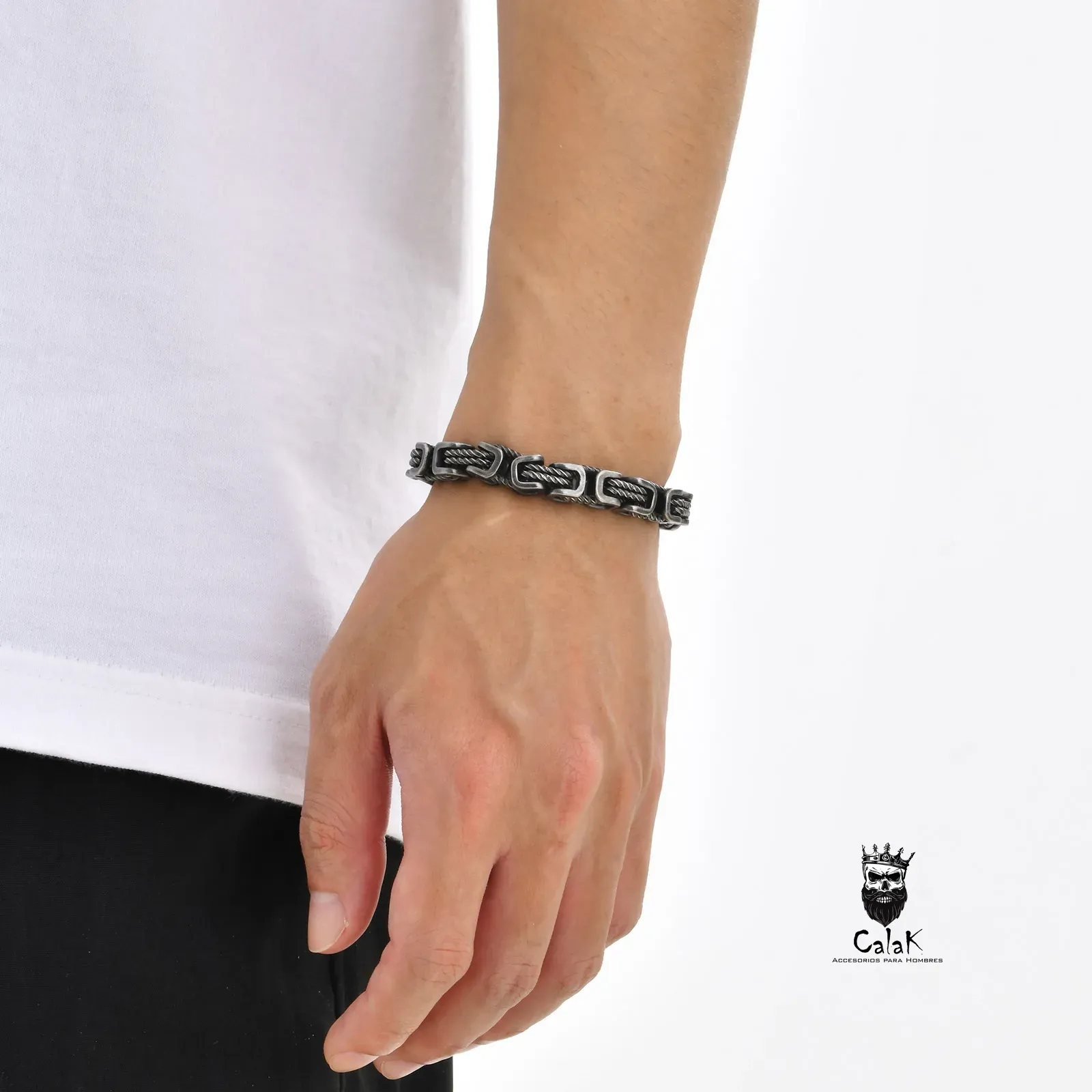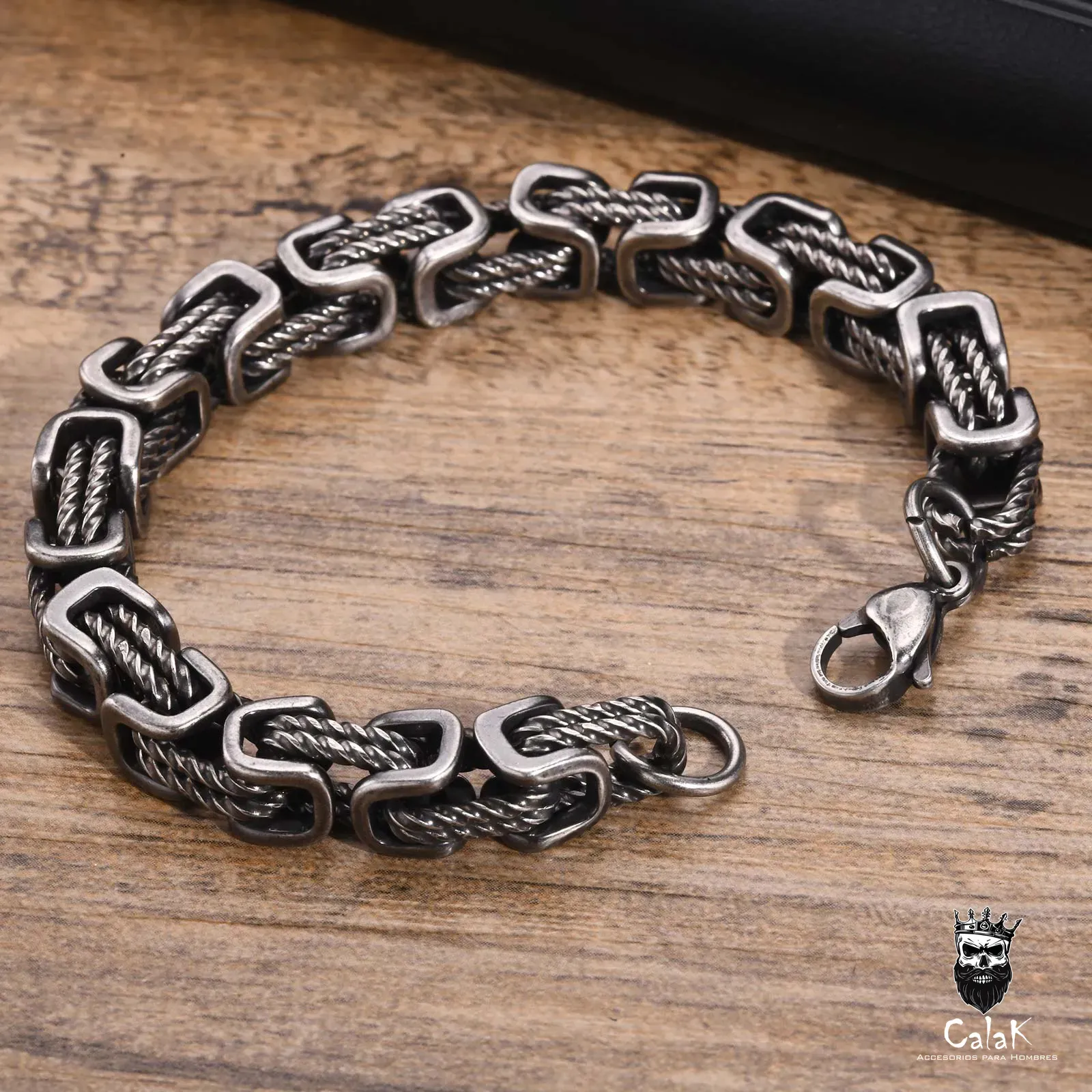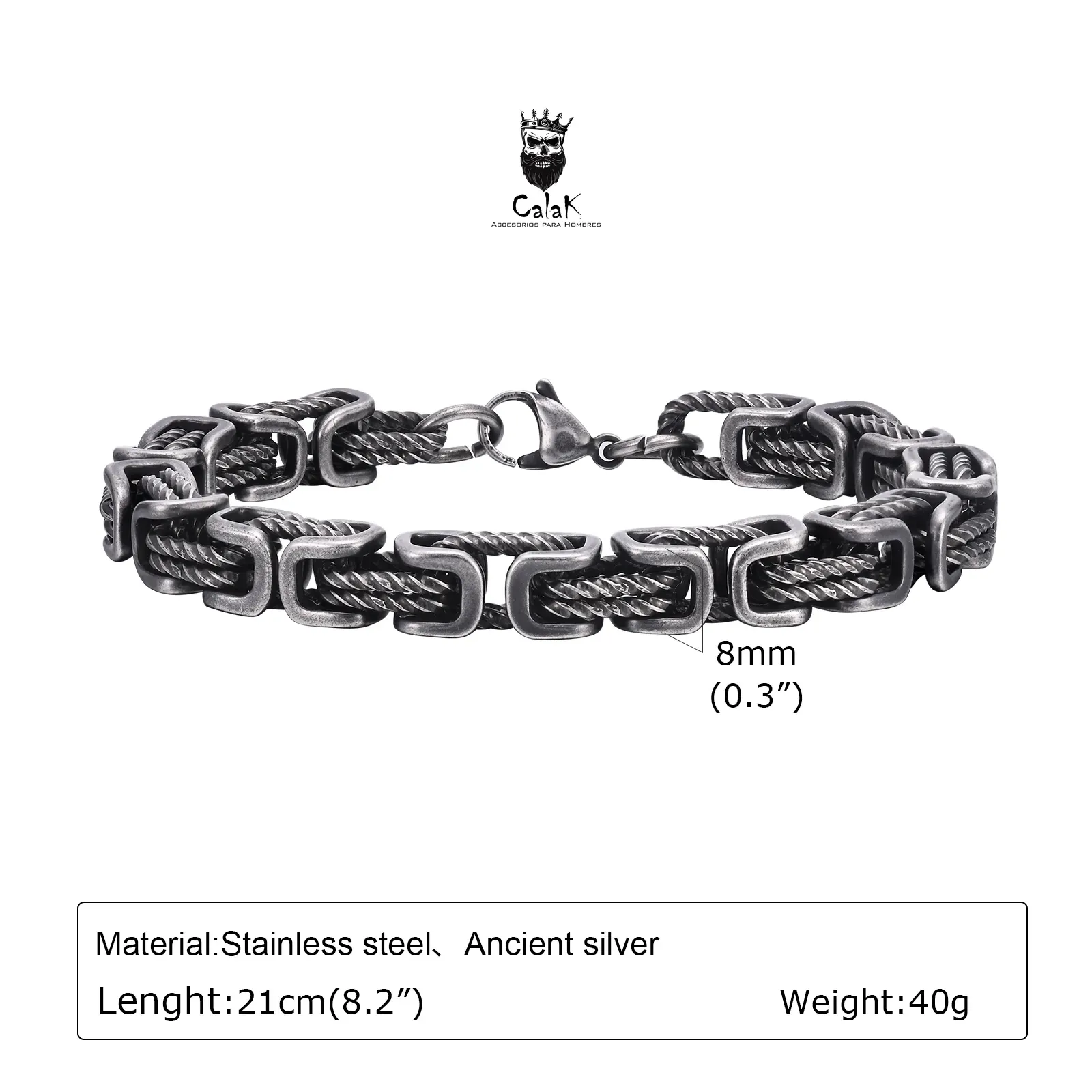 Pulsera de eslabón retro hecha de acero inoxidable, con una medida de 21cms. Añade un toque de estilo y elegancia a tu look diario con esta pulsera única. Ideal para cualquier ocasión, esta pulsera es un accesorio imprescindible en tu colección de joyas.